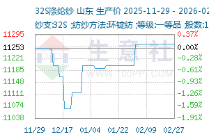 | 纱支:32S ;纺纱方法:环锭纺 ;等级:一等品 ;股数:1股 ;颜色:本白 ;纱质:大化 ; | 润丰达 | 11000元/吨 | 11000 | 0 | 2026-02-25 | |